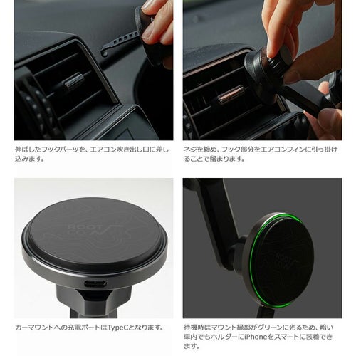 iPhone:MagSafe対応機種(ROOT CO.ケース装着時はケースにMageSafe対応磁気リングを貼り付けの上ご利用ください。)