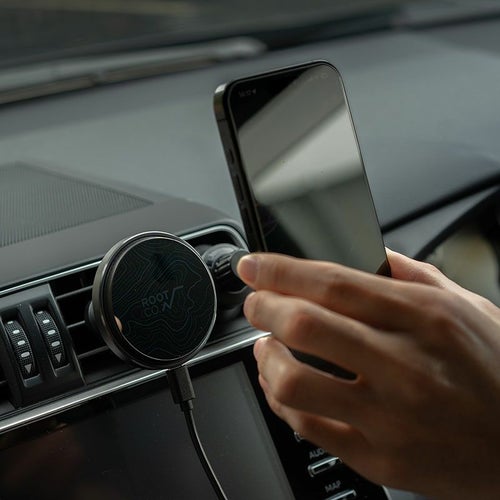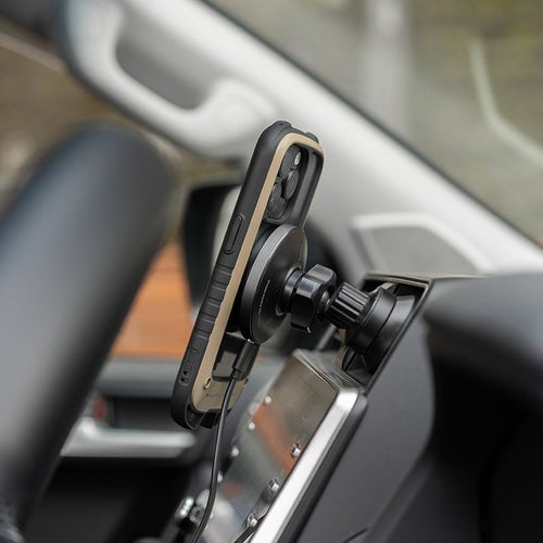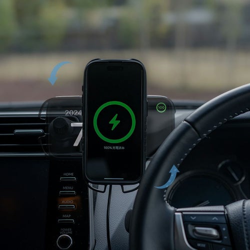 MagSafe対応のカーマウント(車載スマホスタンド)。MagSafe(磁気)を利用してiPhoneをホールド&ワイヤレス充電が可能です。