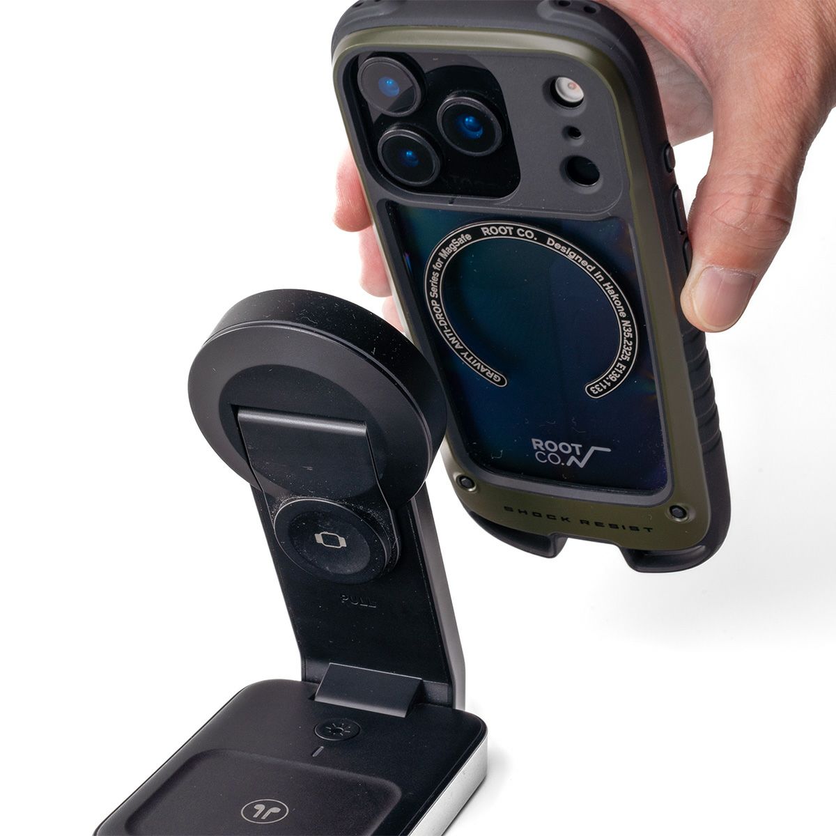 PLAY EZ Fold - 3 in 1 Mag Safe Charging Station(MagSafe充電器)PLAY EZ1 MagSafe Wireless Car Charger(Mag Safeカーマウント)等へ取り付けが可能となります。