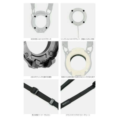 ROOT CO.オリジナル仕様のマグネットジョイント式ギアホルダー”QUAD MAG.”を採用したネック&ショルダーストラップ。