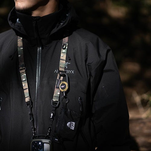 アウトドアでのミニマルスタイルを叶えるデザインと手ぶらを後押しするギミックを搭載。 好きな長さに調節ができる為、ショルダーストラップ/ネックストラップの2通りの使い方が可能。また、自由度の高いアタッチメント式で、吊り下げるものの着脱がスムーズになる構造を採用。