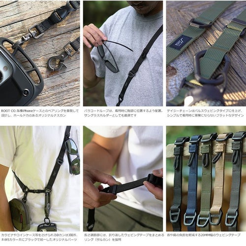 ROOT CO.の提案する「便利」を実現する、 ユーティリティーなオリジナルのスマホショルダーストラップのMILITALY EDITION(カモフラージュタイプ)。