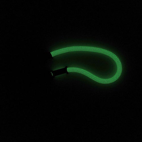 インクブラック×蓄光の2タイプの糸を編み込んでいるため、光を吸収して暗闇で発光。ナイトアクティビティやフェスで活躍します。