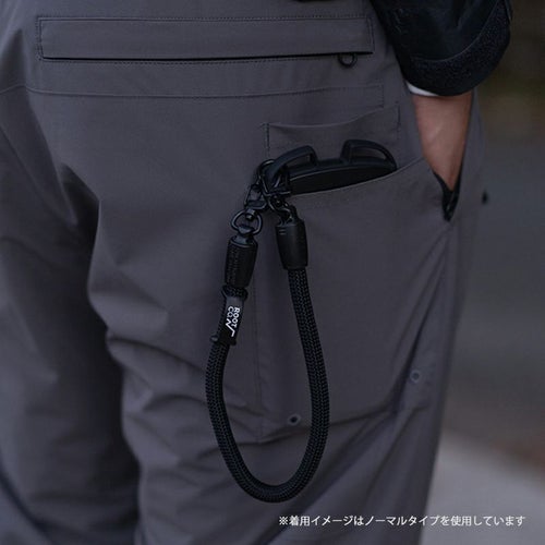 日本製ナイロンを使用したタフなクライミングロープは耐久性・実用性に優れており、わずらわしい“ねじれ”もありません。 YKK製ロープエンドコネクター【EPMアリゲーターロックシステム】によりシンプルでスマートなスタイルを実現。 別売りのストラップホルダー(インナーシート)をお使いのスマートフォンケースにはさむだけで機種を問わず簡単に装着出来ます。 また、ウォレットや小物・ギア等をレザー製フックパーツに装着可能。 短くかさばらない長さで、手首等にストラップをかけることで紛失・落下防止となります。