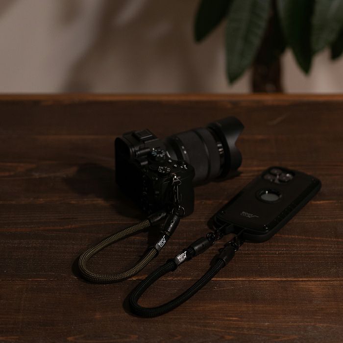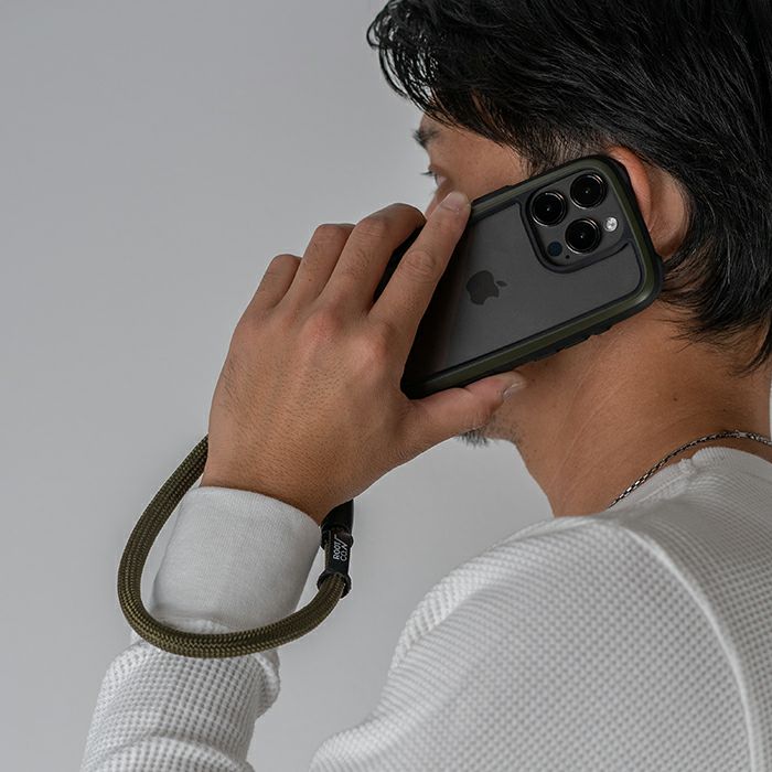 手首にかけられる短くかさばらない長さのショートストラップ。落下防止のハンドストラップとしてはもちろん、パンツのウエストループ等と繋いで紛失・落下防止のウォレットコードとしても使用できます。肩がけタイプのショルダーストラップと用途にあわせて使い分けても。