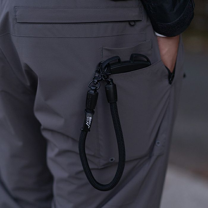 日本製ナイロンを使用したタフなクライミングロープは耐久性・実用性に優れており、わずらわしい“ねじれ”もありません。 YKK製ロープエンドコネクター【EPMアリゲーターロックシステム】によりシンプルでスマートなスタイルを実現。 別売りのストラップホルダー(インナーシート)をお使いのスマートフォンケースにはさむだけで機種を問わず簡単に装着出来ます。 また、ウォレットや小物・ギア等をレザー製フックパーツに装着可能。 短くかさばらない長さで、手首等にストラップをかけることで紛失・落下防止となります。