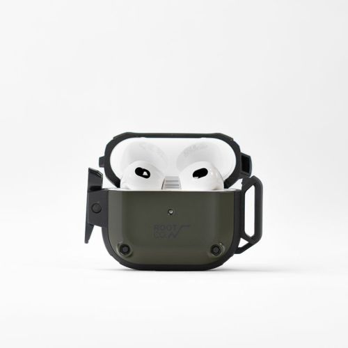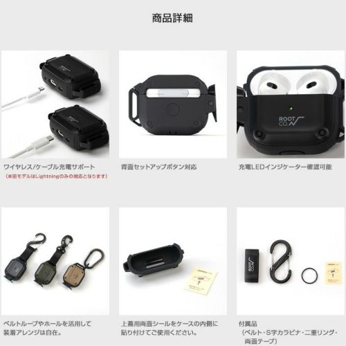 米国MIL規格準拠の耐衝撃性&PCとTPUの2層構造で衝撃吸収力を兼ね備えたAirPodsケース。20mm幅のウェビングテープ等を取り付け可能なループと二重リングを取り付け可能なホールをサイドに搭載し、安心のロック機構を採用しました。