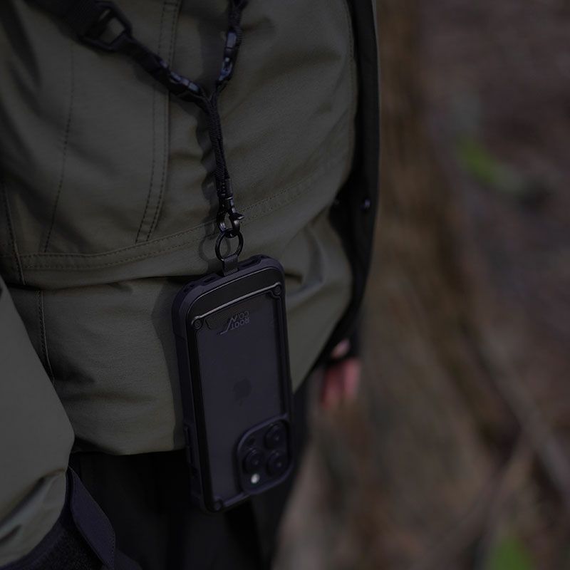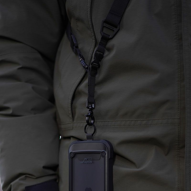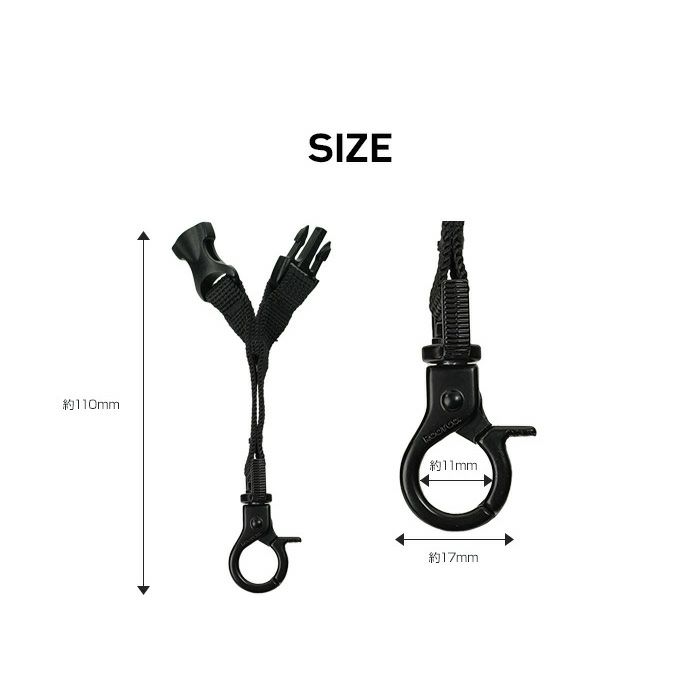 吊り下げたものをアタッチメントパーツごとワンタッチで着脱できる為、 ショルダーストラップ(本体)を身体から外さずに、スムーズな取り外し・交換が可能です。