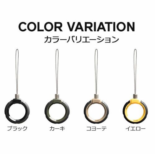 シンプルなリングストラップを、ROOT CO.らしいアウトドアギアライクなデザインに。Tough&Basicや+Hold.などのiPhoneケースとのペアリングもお勧めです。リニューアルしたカラーは、人気のブラック・カーキ・コヨーテに鮮やかなイエローの全4カラー。