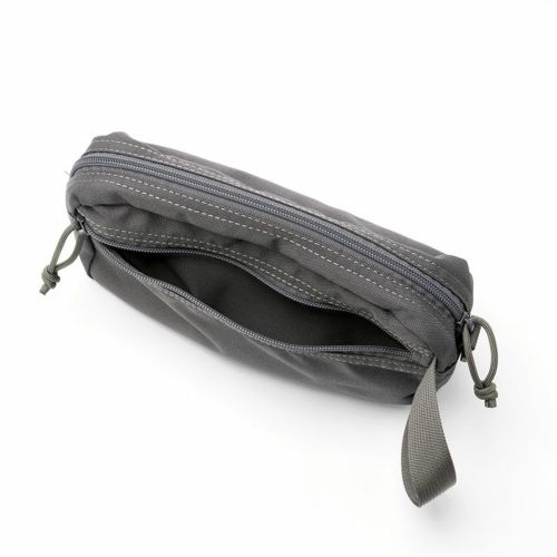 利用頻度の高いギアの吊り下げを想定し、ファスナーエンド(持ち手側)にROOT CO.オリジナルDカンを配置しました。AirPodsケースなど、外付けしておきたい小物の吊り下げに便利です。