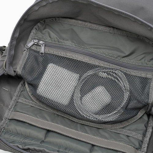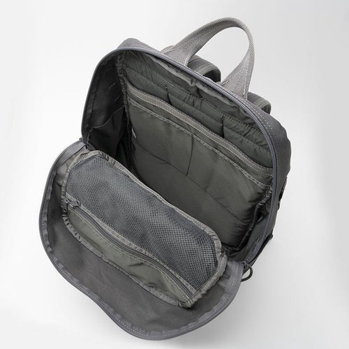 ビジネスシーンを中心としたタウンユースが前提ながらも、ライトなトレッキング等がカバーできる絶妙な大きさで、PCなどのビジネス用品はもちろん、ドリンクや軽食、着替えなども入れられる程良いサイズ感となっています。 16インチ程度までのPCやタブレットが収納可能なメインスリーブは、周辺アイテムの収納に便利な内ポケット付き。使用頻度の高い小物やギアを収納する機会が多いアウトポケットは、小型の仕切りポケットや着脱式キーホルダーを完備し、仕分けがしやすい構造に。両サイドにもドリンクなどを入れられるポケットが付いています。