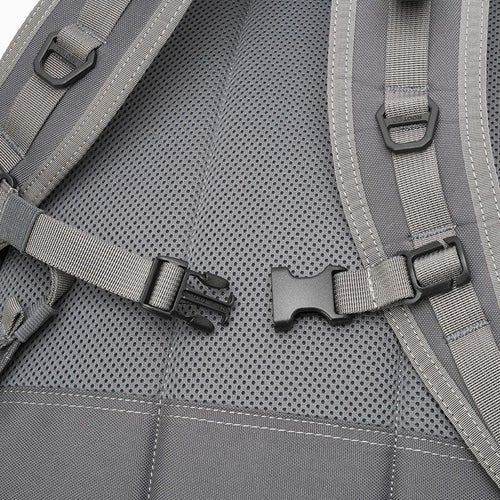 ショルダーハーネス上には、20mm幅のナイロンテープを設置しROOT CO.オリジナルのDカンを搭載しました。カラビナ等のギアの吊り下げはもちろん、ナイロンテープにはMAG REEL SQR.シリーズも直接装着が可能です。