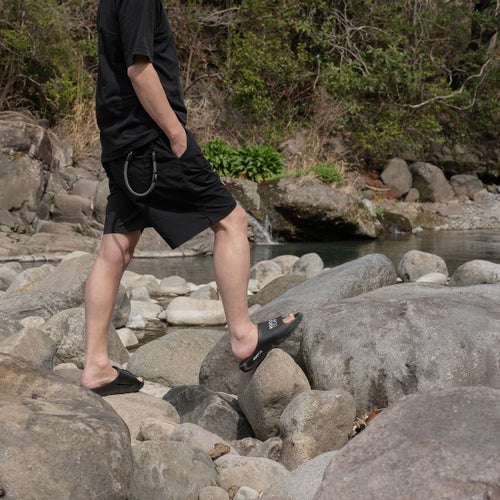 アウトドアシーンはもちろん室内履きや運動後のリラックスシーンにも。