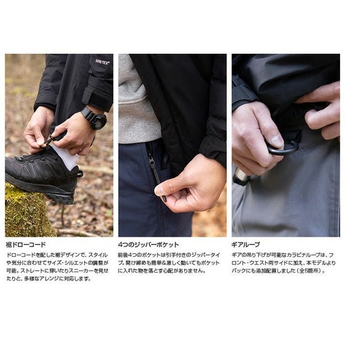 幅広いフィールドでの着用を想定した、動きやすくタフな仕様の3シーズン向けアウトドアロングパンツ『PLAY Omni-Field Pants』。ストレッチ生地の機動性・撥水加工の耐水性・ダブルニー縫製の耐久性を兼ね備えた、ゆったりした穿き心地のテーパードパンツに仕上げました。裾ドローコードでサイズ・シルエットが調整できるので、コーディネートごとの多様なアレンジが可能です。