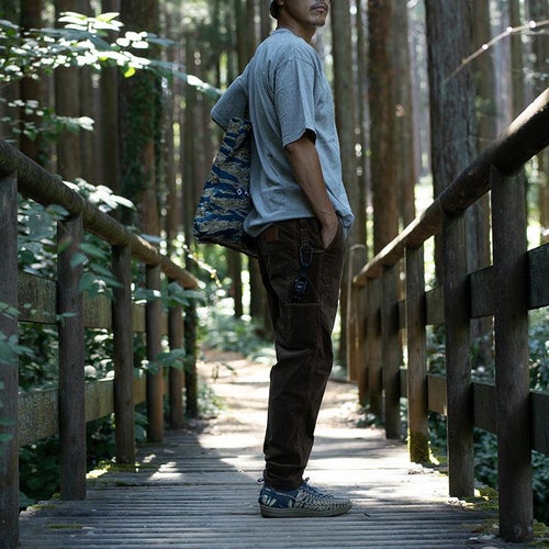 ハンマーループや左右アシンメトリー形状の特徴的なサイドポケット等の機能性はそのままに、ROOT CO.アパレルラインにもマッチするよう太すぎないシルエットにテーパードを利かせました。
