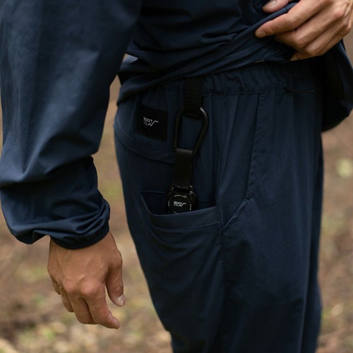バックル付きのウェビングベルト(ウエスト)&ジッパーフライ採用。キャンプやハイキングはもちろん日常使いを想定したアウトドアロングパンツ。