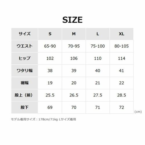 ウエストはゴム仕様に加え、内側にウエスト紐を配し、ベルトなしでも安定したフィット感で着用可能。