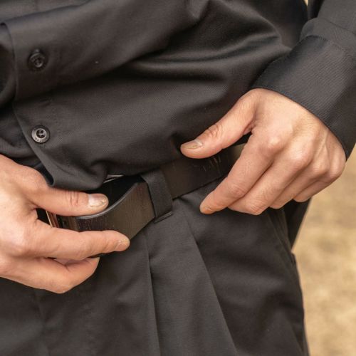 さらにベルトループ付きのため、お手持ちのベルトを使ったスタイリングにも対応します。