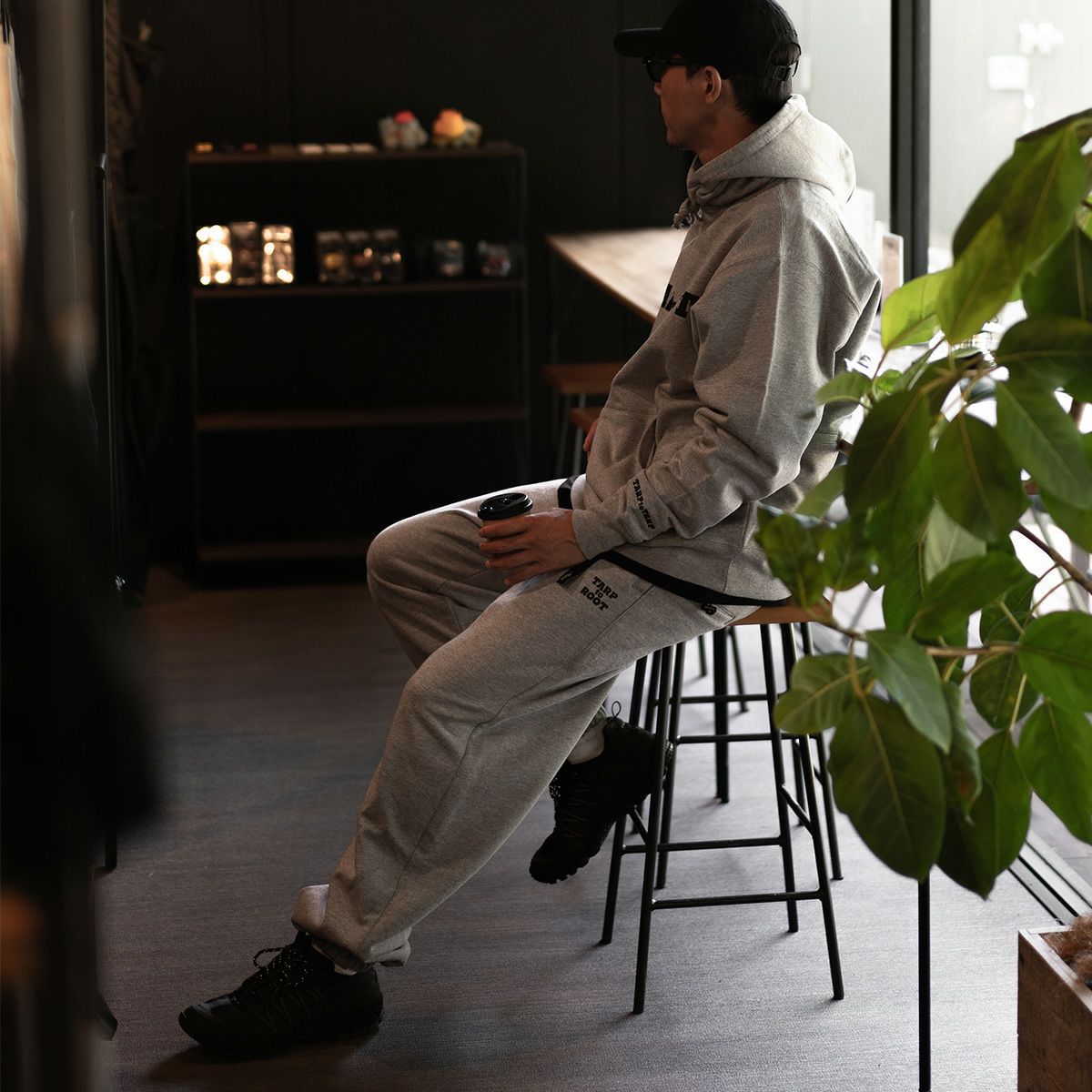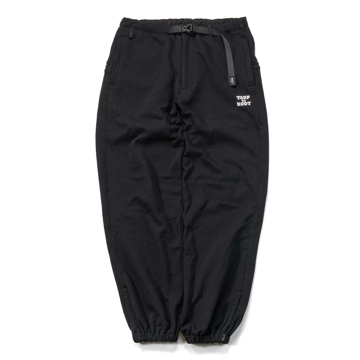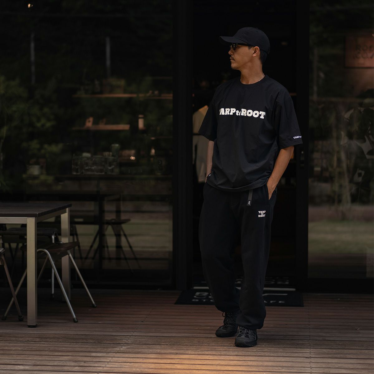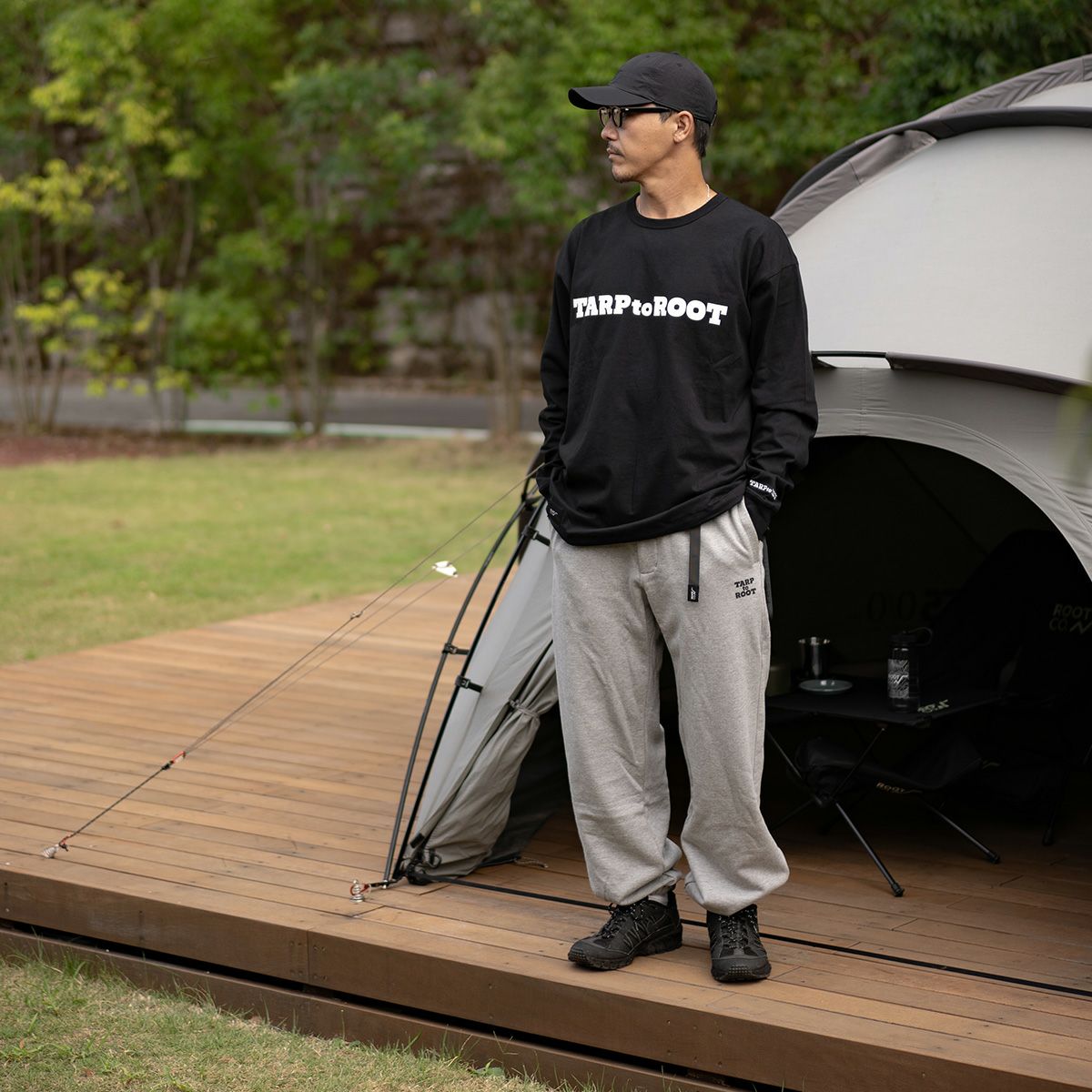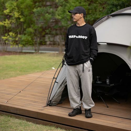 ROOT CO.定番のギミック(ギアループ・ギアポケット)を加え、日常でもアウトドアでもシームレスに使える、TARPtoTARP×ROOT CO.コラボレーションのスウェットパンツ。