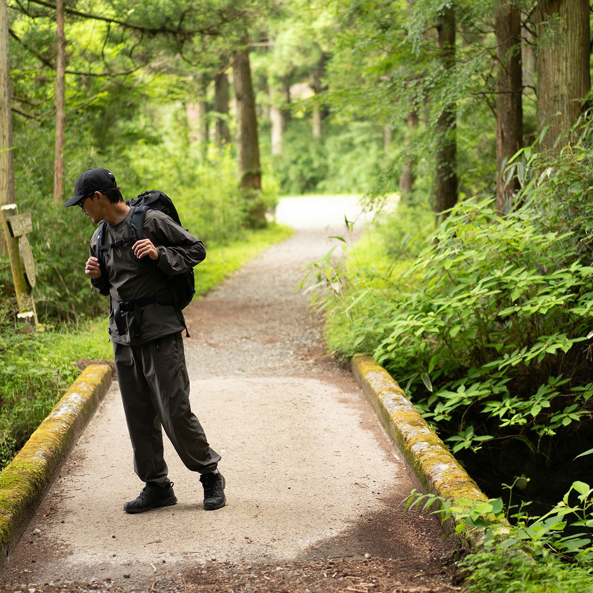 伸びのよいストレッチ素材を採用、アウトドアアクティビティでの動きを妨げません。
