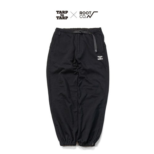 ROOT CO.定番のギミック(ギアループ・ギアポケット)を加え、日常でもアウトドアでもシームレスに使える、TARPtoTARP×ROOT CO.コラボレーションのスウェットパンツ。
