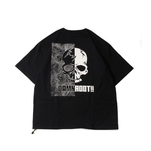 DAMNGOOD!! × ROOT CO.コラボレーションモデル。DAMNGOOD!!オリジナルフォントのコラボロゴをフロント・バックにプリントしました。裾元にはDAMNGOOD!!・ROOT CO.両ブランドの織ネームを配置。