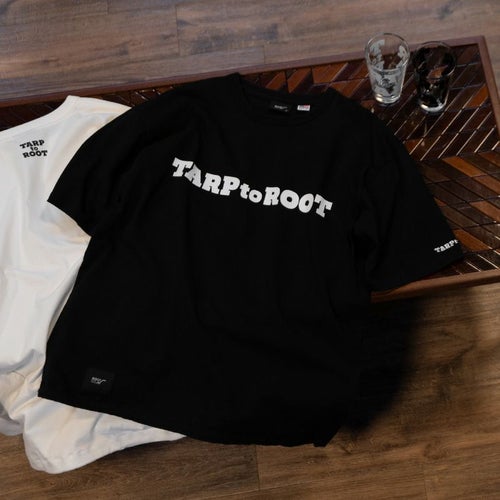 TARPtoTARP×ROOT COコラボレーションモデル。TARPtoTARPオリジナルフォントのコラボロゴをフロントにプリントしました。