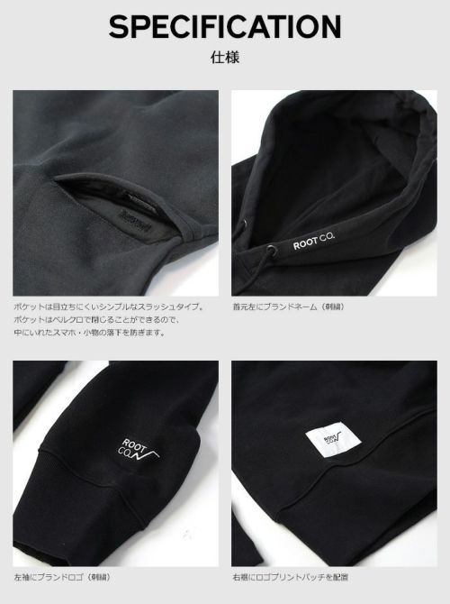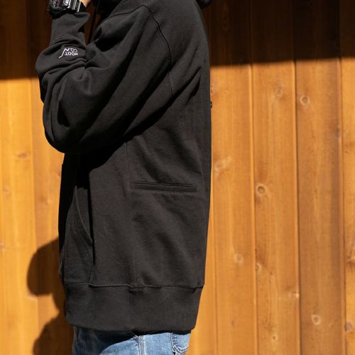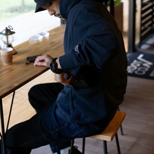 本体はUSAコットン100%の程良い厚みの生地を使用。カラーはブラック・ネイビー・グレーの3カラー、程良い厚みでざっくりした風合いの1着です。