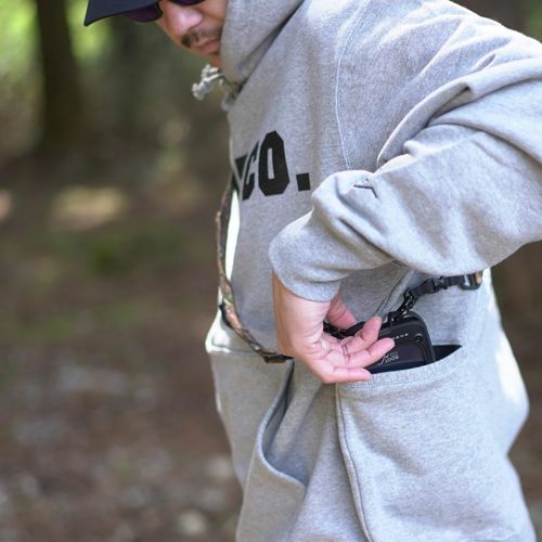 16oz とやや厚手の生地を使用したスウェット。 キャンプでの着用はもちろん、デイリーユースに着回すことができるシンプルなデザインに。