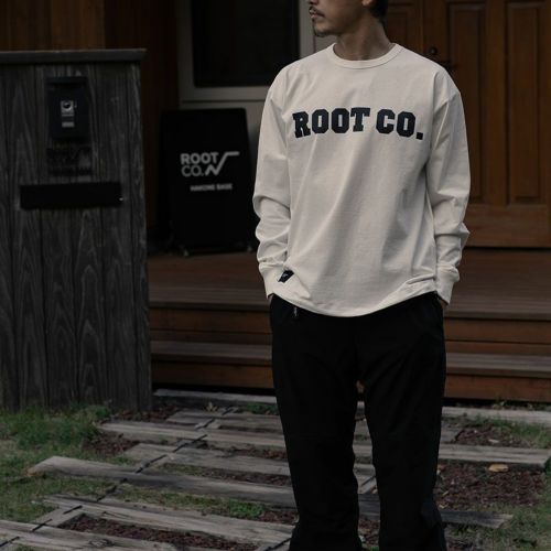 カラーはブラック・ホワイト・ネイビー・カーキの4カラー。胸元に生地と同系色のROOT CO.刺繍ロゴを配した、程良いサイズ感でざっくりした風合いの1着です。
