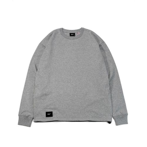 程良いサイズ感でざっくりした風合いの1着です。フロント右下にワンポイントとなる織りネームを配置。