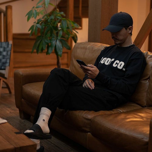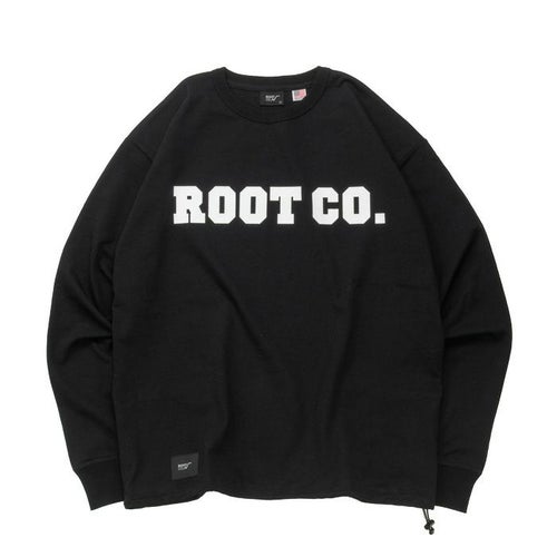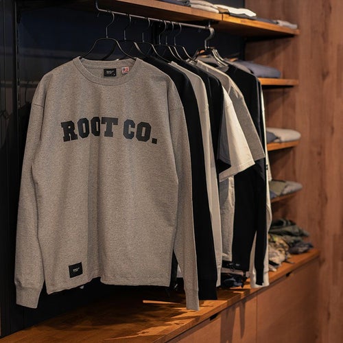 カラーはブラック・ホワイト・ネイビー・カーキの4カラー。胸元に生地と同系色のROOT CO.刺繍ロゴを配した、程良いサイズ感でざっくりした風合いの1着です。