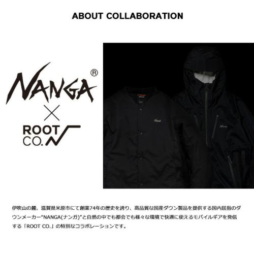 伊吹山の麓、滋賀県米原市にて創業74年の歴史を誇り、高品質な国産ダウン製品を提供する国内屈指のダウンメーカー“NANGA(ナンガ)”と、自然の中でも都会でも様々な環境で快適に使えるモバイルギアを発信する「ROOT CO.」の特別なコラボレーションです。