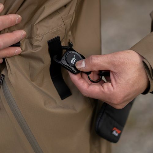 フロントウエスト部の他、左右両サイドにジップポケットを追加。このポケットにショルダーストラップに装着したスマートフォンやギアを収納することで、歩行時や屈んだ際に邪魔にならず、揺れ・ひっかかり・ぶつかり等のストレスから解放します。