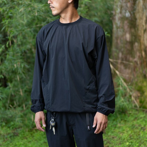 ボディサイドにコンシールファスナー付きのシームポケットを配した、シンプルなROOT CO.オリジナルナイロンロングスリーブTシャツです。ROOT CO.定番の「PLAY UTILITY BACK POCKET Long Sleeve T-Shirts」よりも身巾を少し大きくデザインしたワイドシルエット。裾元両サイドのドローコードでシルエット調整が可能です。