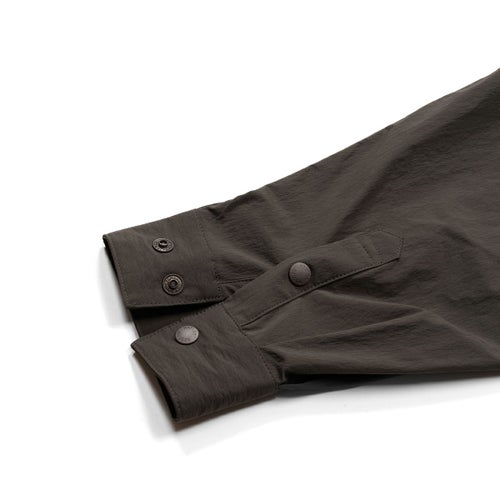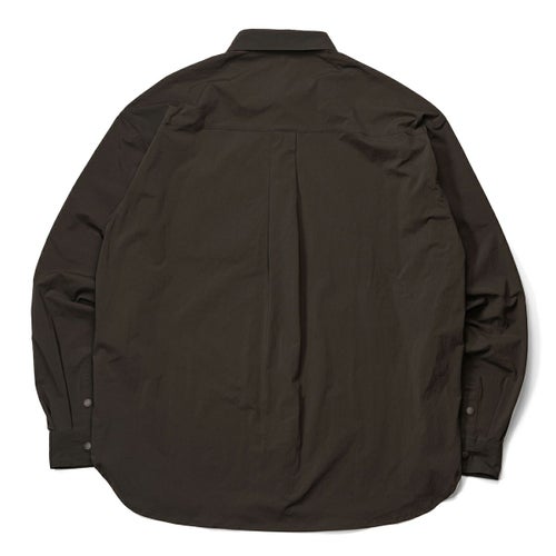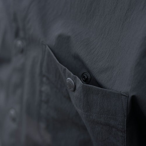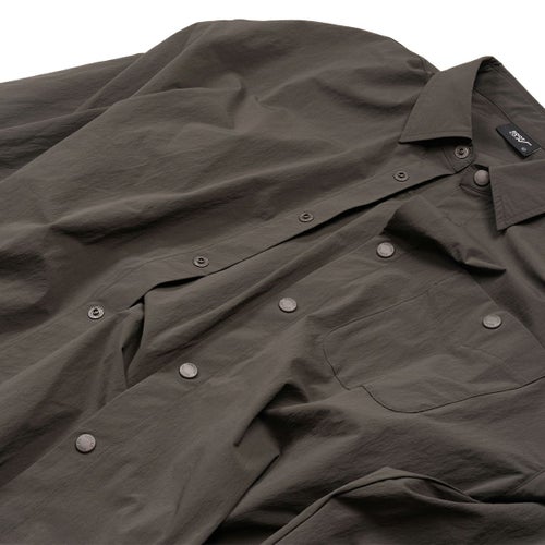 2026年新作、伸縮性に優れたナイロン素材を採用し、アウトドアシーンから日常まで着用できるボタンシャツ『PLAY STRETCH UTILITY Long Sleeve Button Shirts』。スナップボタンにのみロゴをさりげなく配した、ミニマルなデザインです。