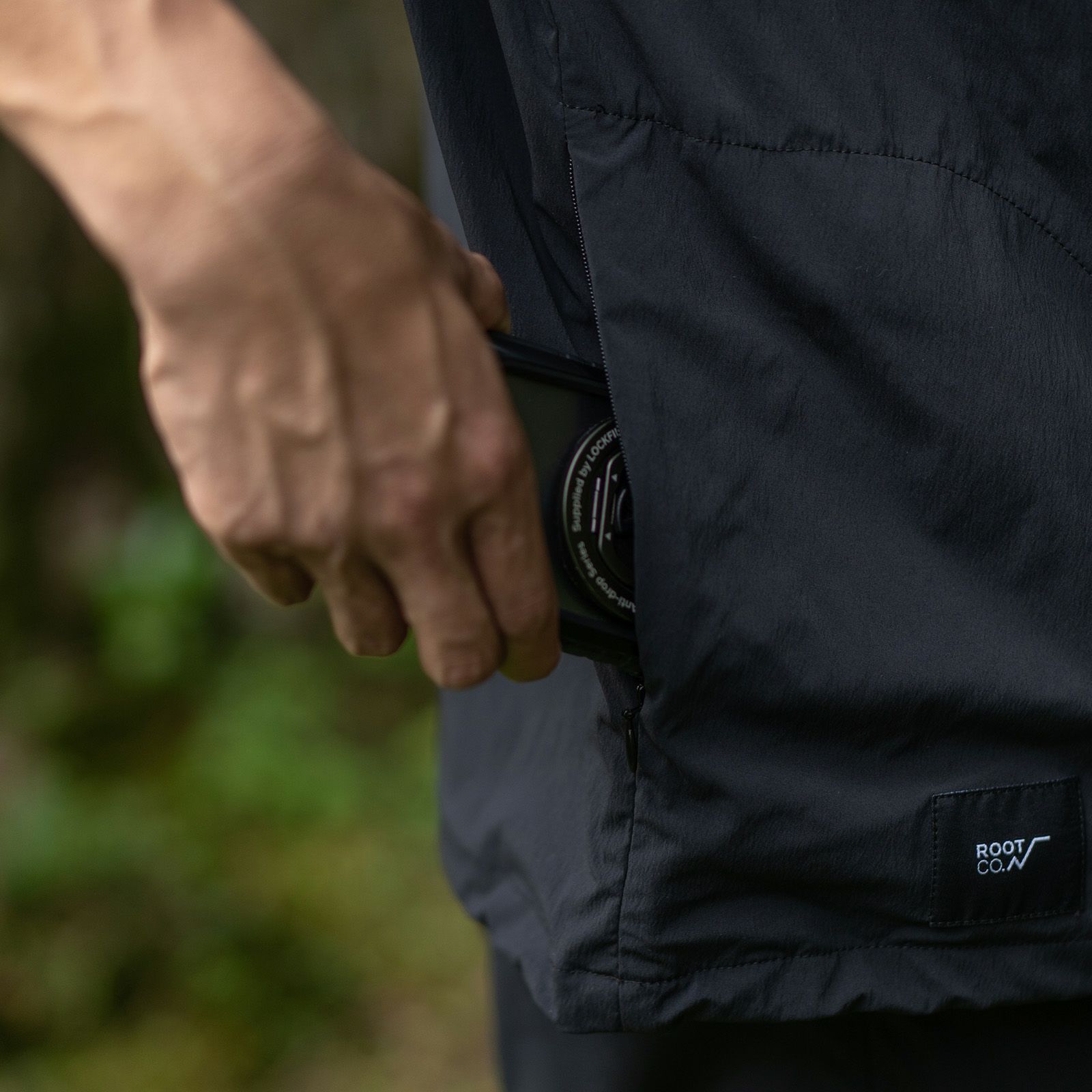 ショルダー掛けのスマホやギアを収納でき、走ったり屈んだりしても揺れやズレ落ちを抑えます。コンシールファスナー付きのポケットでシンプルな見た目のデザインに加え、内側をメッシュ生地にすることで軽さも追求しました。