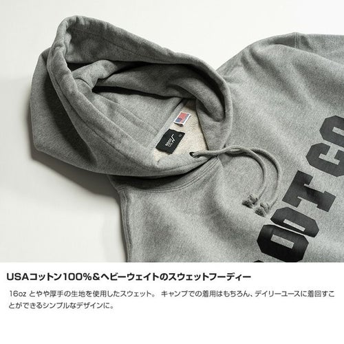 16oz とやや厚手の生地を使用したスウェット。 キャンプでの着用はもちろん、デイリーユースに着回すことができるシンプルなデザインに。