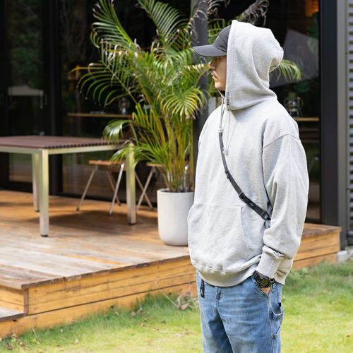 ボディの背面左右両サイドにシンプルなバックポケットを搭載。このポケットにショルダーストラップに装着したスマートフォンやギアを収納することで、歩行時や屈んだ際に邪魔にならず、揺れ・ひっかかり・ぶつかり等のストレスから解放します。