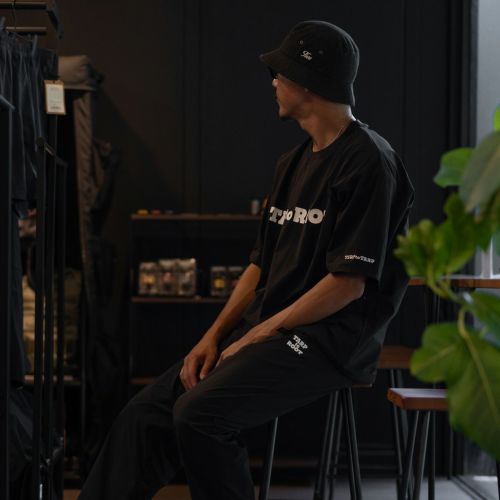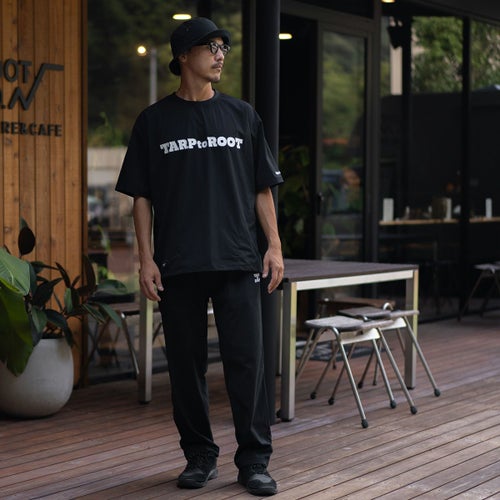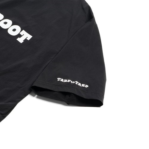 TARPtoTARP×ROOT CO.コラボレーションモデル。TARPtoTARPオリジナルフォントのコラボロゴを胸元や首元にプリント、左袖部にもTARPtoTARPロゴを刺繍しました。