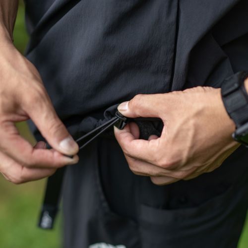 ショルダー掛けのスマホやギアを収納でき、走ったり屈んだりしても揺れやズレ落ちを抑えます。コンシールファスナー付きのポケットでシンプルな見た目のデザインに加え、内側をメッシュ生地にすることで軽さも追求しました。