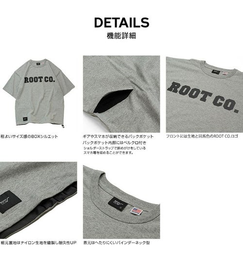 背面両サイドにバックポケットを配した、ROOT CO.オリジナルの機能性Tシャツ。