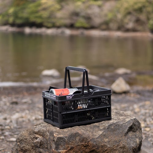 取っ手付きでコンパクト、軽量設計で気軽に持ち出せるバスケットタイプの折り畳み式コンテナ。