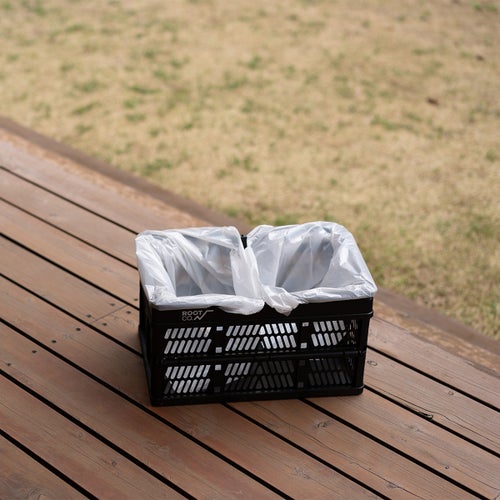 容量は約15.4L。小物の整理はもちろん、キャンプ道具のラフな収納や、袋をセットして簡易ゴミ箱として使うなど、シーンに応じて幅広く活躍。