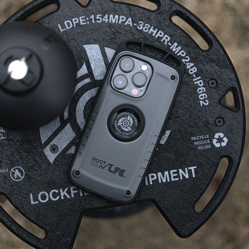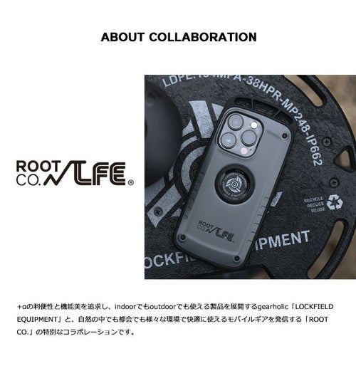 機能・耐衝撃・デザインの3点を兼ね備え、アウトドアテイストを取り入れたデザインのiPhoneケース。本体にはLEF×ROOT CO.コラボレーションロゴをあしらい、ポートホールパーツはLFEオリジナル仕様のパーツとなっています。