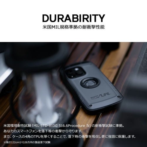 - 米国環境耐性試験「MIL-STD-810G 516.6Procedure Ⅳ」の耐衝撃試験に準拠。あなたのスマートフォンを落下等の衝撃から守ります。※高さ122cmから26方向の製品落下試験