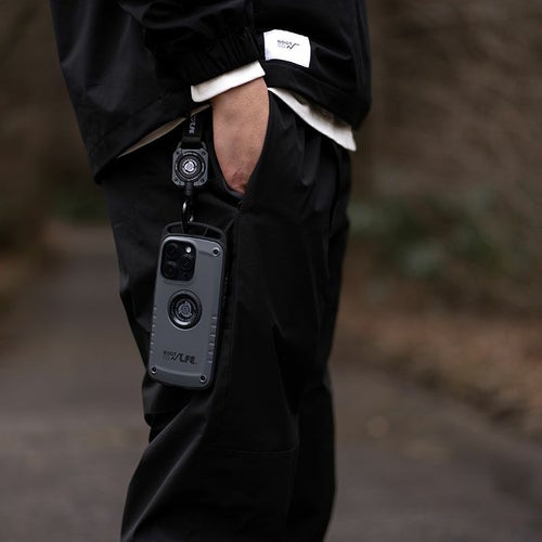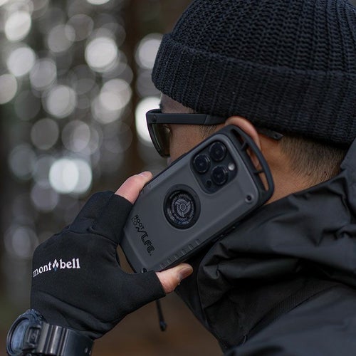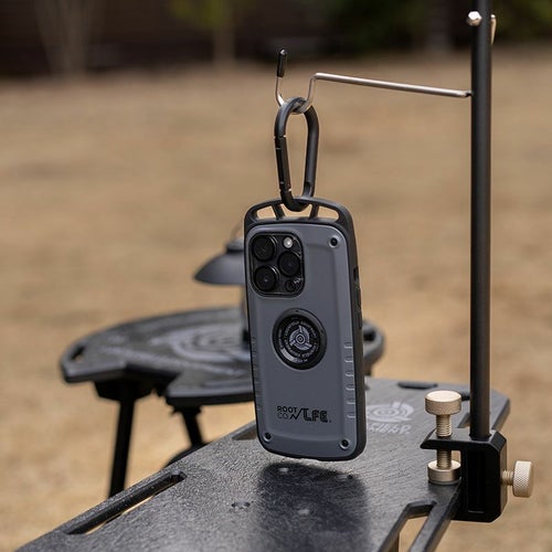 - ケース上部に搭載されたカラビナループに、別売りのマグネット式リールカラビナ「MAG REEL 360」やスマホショルダーストラップ「UTILITY WEBNING NECK/SHOULDER LOOP」を取り付ける事が可能。もちろんお手持ちのカラビナ等を装着することもできます。
