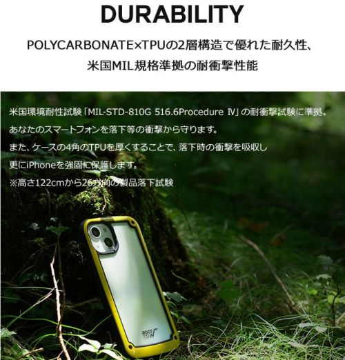 米国環境耐性試験「MIL-STD-810G 516.6Procedure Ⅳ」の耐衝撃試験に準拠。あなたのスマートフォンを落下等の衝撃から守ります。※高さ122cmから26方向の製品落下試験