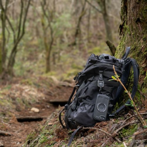 下部に2つのカラビナループを備え付け、ケースに直接カラビナを取り付ける事が可能。バックパックやショルダーバッグ・ベルトループ等にそのまま装着できるので、登山やアウトドア時の落下防止に。