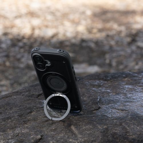 また、MagSafeモジュール内蔵リングスタンド部はアウトドアギア感あふれるアルミの質感が特徴。厚みわずか約4mmのスリム設計。邪魔にならないデザインで、日常やアクティビティを最大限にサポートします。